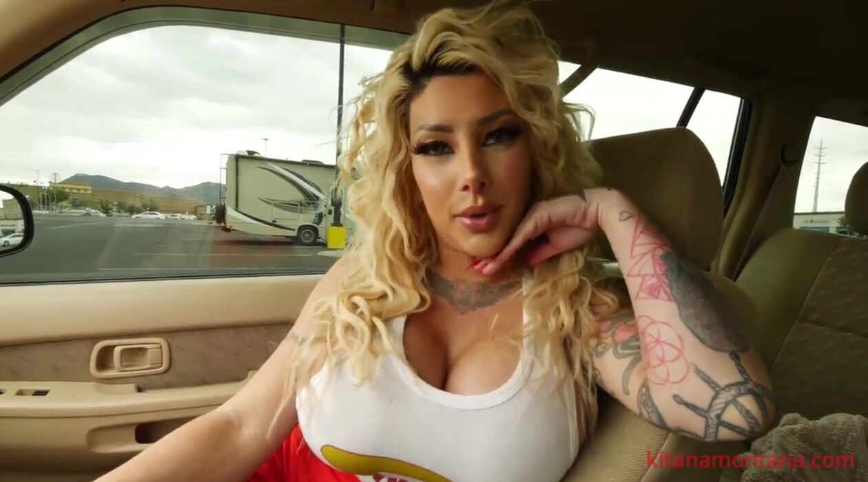 KITANA MONTANA, THE BLONDE BOMBSHELL WITH FAKE HUGE TITS, DROOLS ON A CAR WHILE GETTING FUCKED