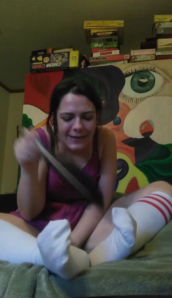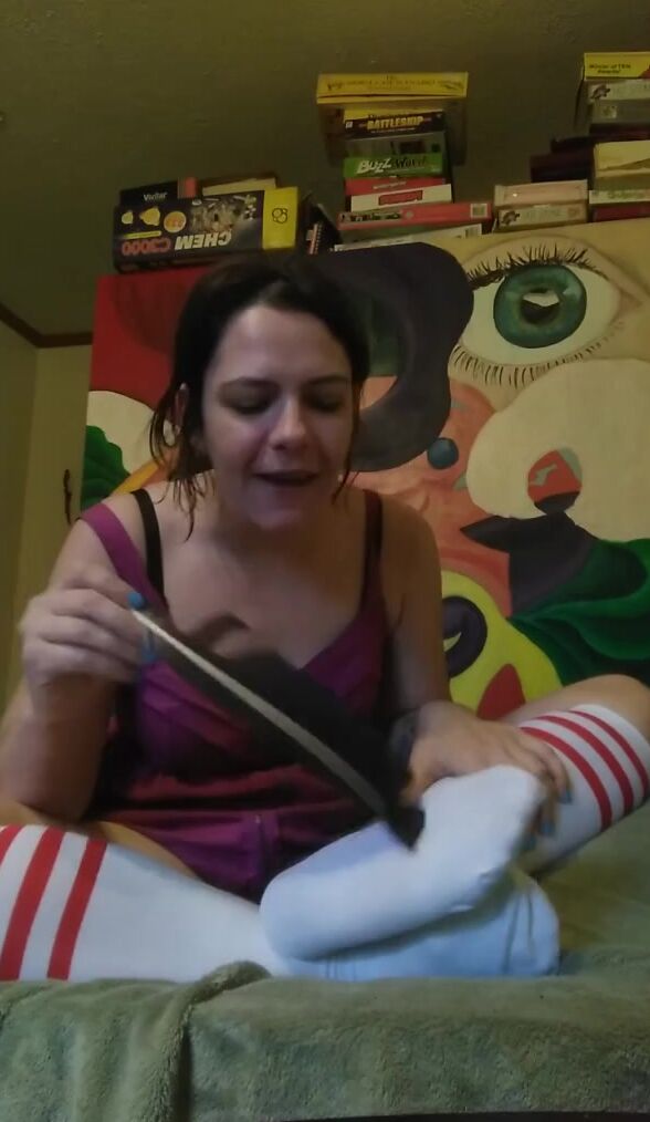 TICKLES FEET IN TUBE SOCKS WITH FEATHER