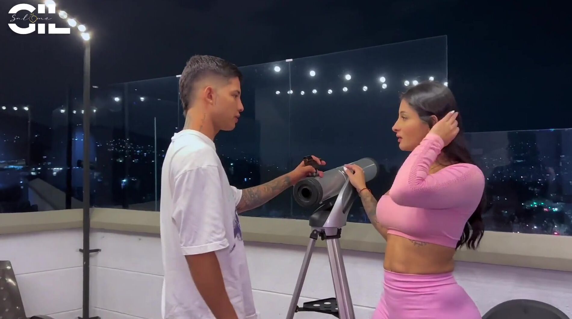 . I'm exercising and my neighbor comes to look at the stars with his telescope, he tells me if I want to see them so I decide to try his telescope, I realize that he is looking at my body with desire so I decide to fuck him for the experience