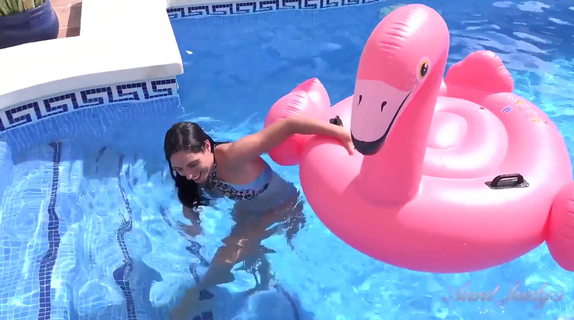 . Hot Spanish MILF Linda Del Sol gets horny playing in the swimming pool under the hot summer sun. She shows off her juicy latina ass, then slides out of her bikini and rubs her tight wet MILF pussy until she makes herself cum. Another gem from AuntJudy's Unrivaled Collection of Hot MILFs.