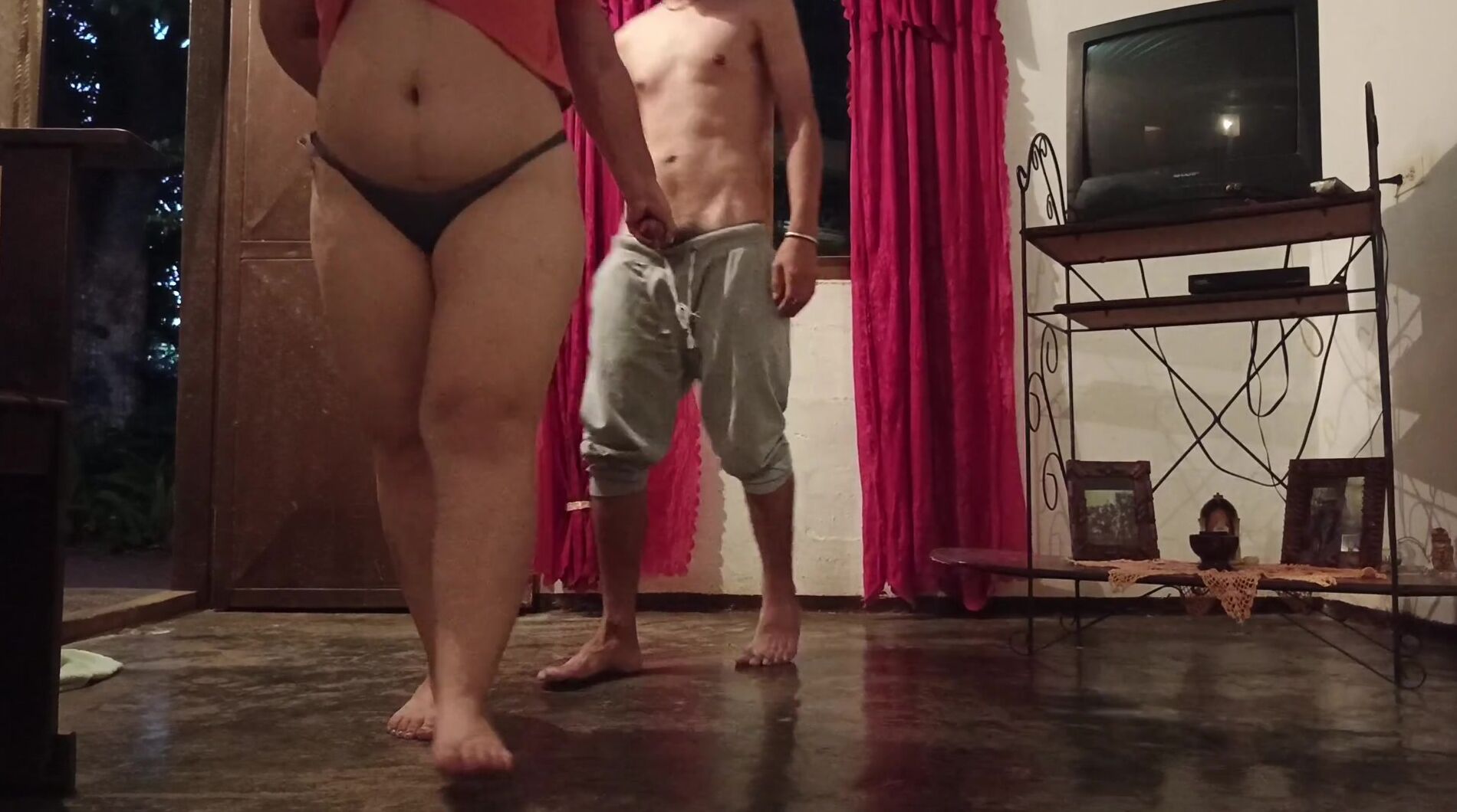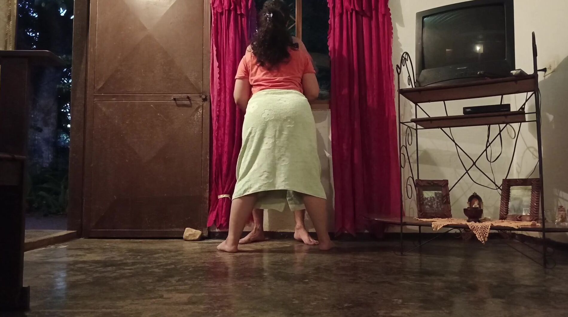 . A sister-in-law walking around the house in cloth to get the attention of her inexperienced brother-in-law. Her husband's can't resist that huge ass and lets himself be carried into the room
