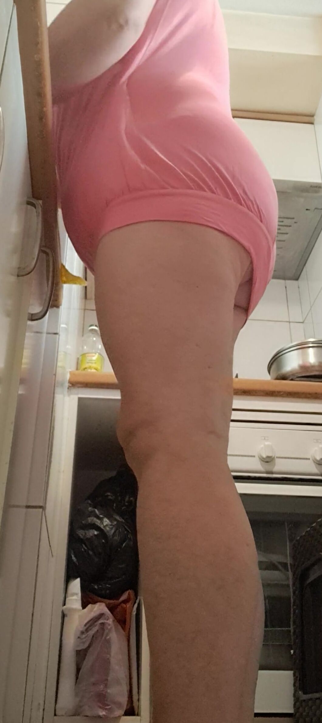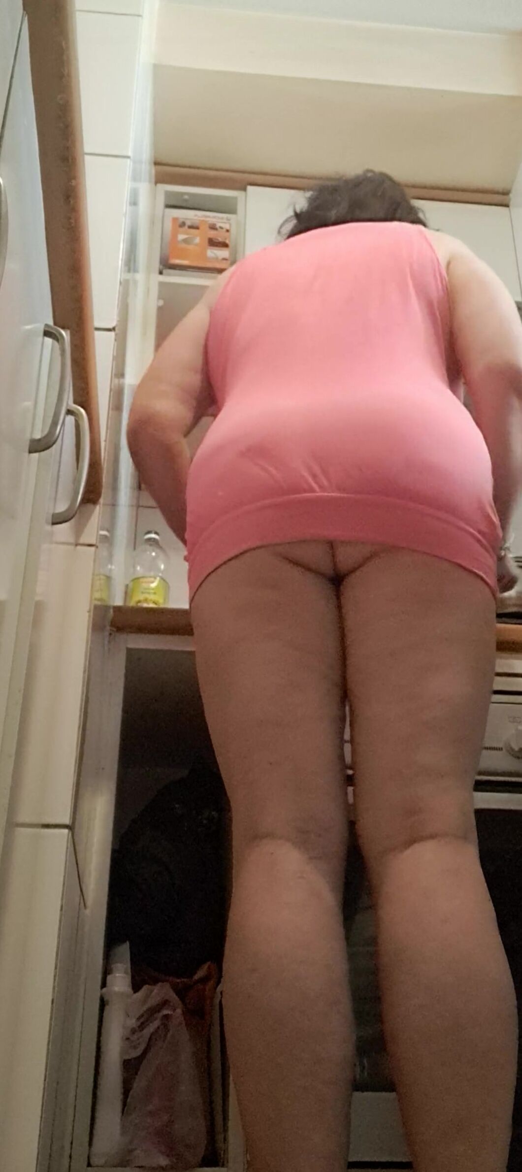 IN THE KITCHEN HALF-DRESSED