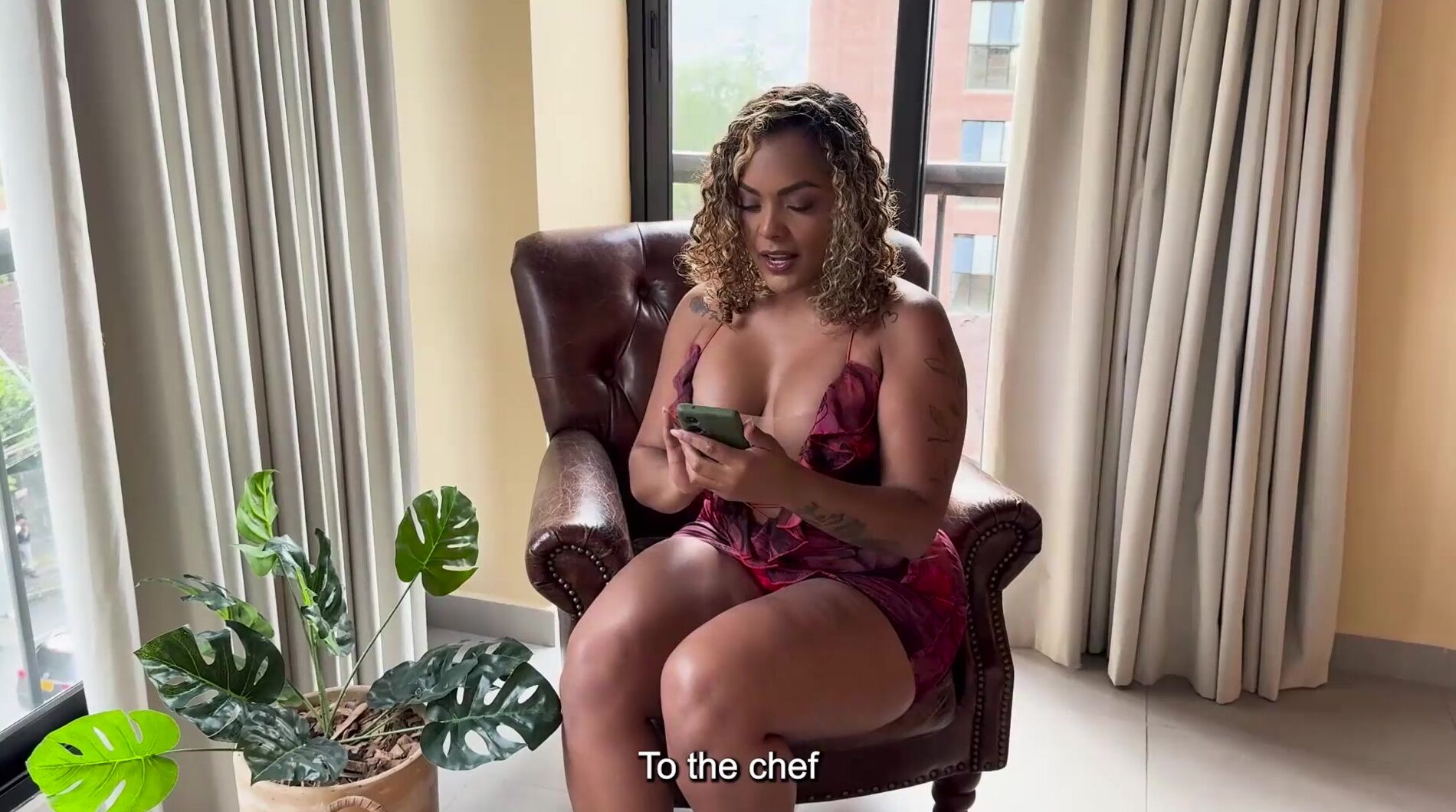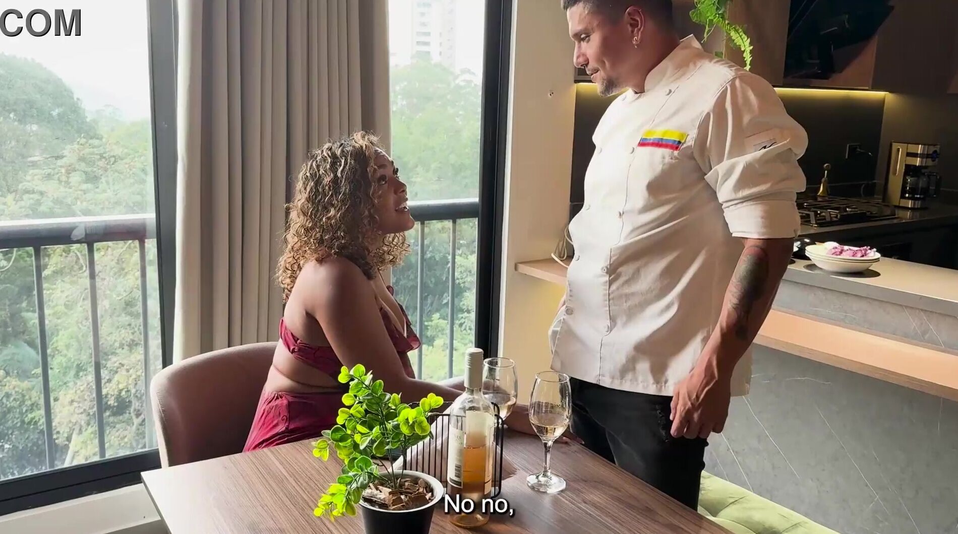 CURVY HOT EBONY MILF ITS PLANTED FOR HER DATE AND FUCK THE CHEF BIG COCK FOR CONFORT- CARLA MORELLI